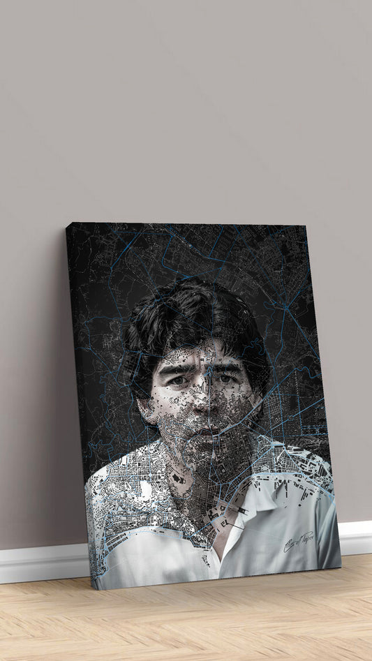 Maradona è sempre stato il suo idolo e ha una collezione enorme di oggetti che lo raffigurano, questa tela è proprio quello di cui aveva bisogno per completare la sua collezione.